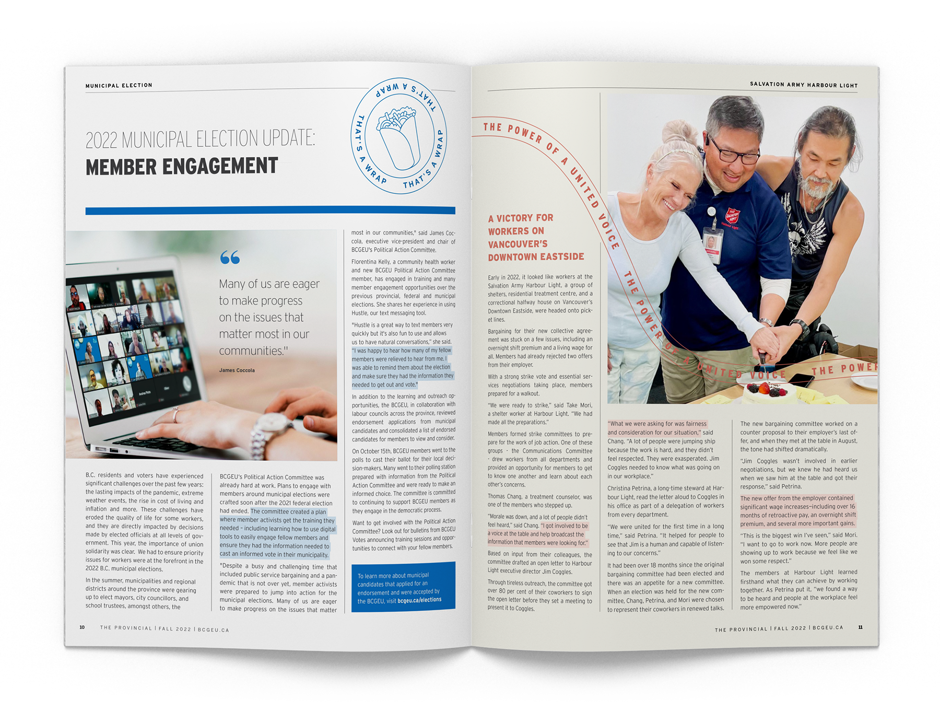 For the redesign of 'The Provincial,' I navigated the challenge of minimal photographic content by drawing inspiration from the visually dynamic layout of Fast Company. I shifted the magazine’s aesthetic to a lively interplay of custom doodles and bold typographic treatments, each page telling a story through its design.